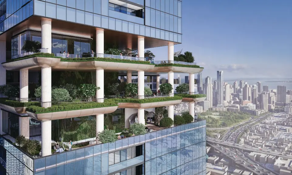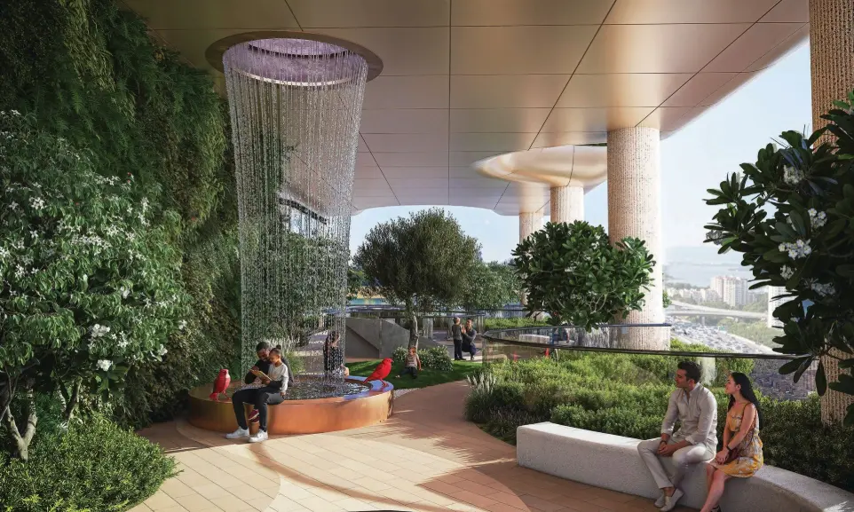 At the heart of this sanctuary are four vertical Sky Parks, each spanning six floors of lush greenery, flowing trails, and shaded canopies, elevated havens offering a quiet retreat from the energy below.