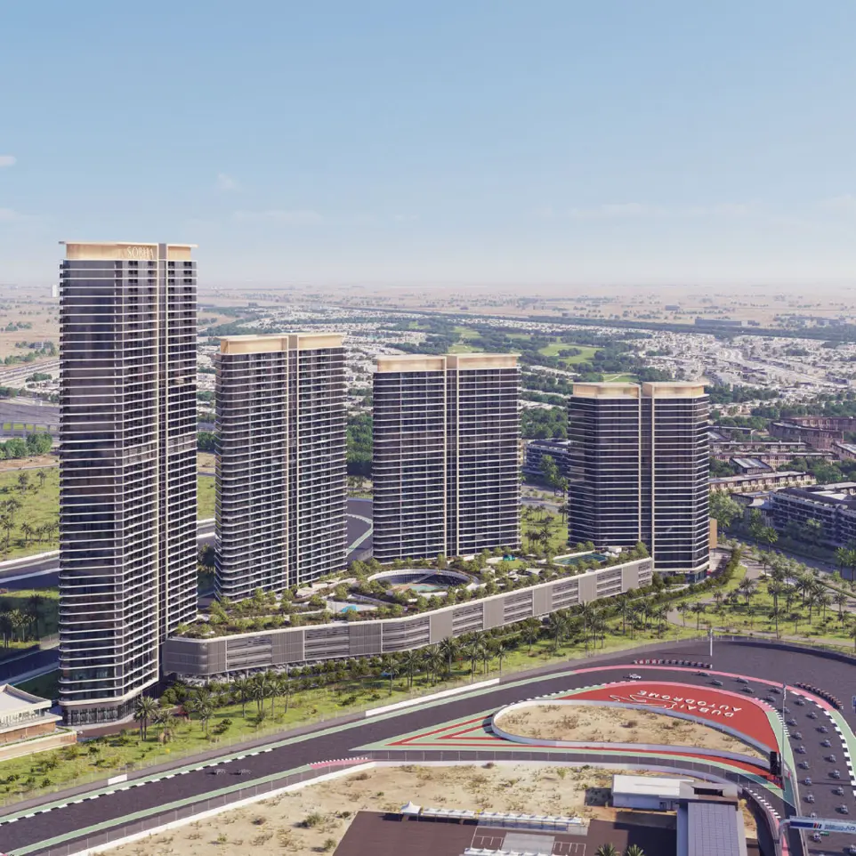 Sobha Solis is a premium residential development in Motor City, offering contemporary 1, 1.5, 2, and 3-bedroom apartments designed with signature Sobha quality. Set across four modern towers with a private residents-only podium, the community features spacious layouts, floor-to-ceiling windows, and balconies overlooking the Dubai skyline, Dubai Autodrome, and Dubai Miracle Garden.